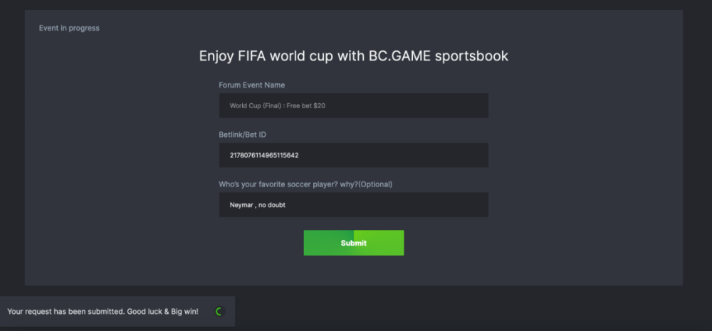https://docs.google.com/spreadsheets/d/1jPYXX8-onKlg6Y0GrcNLd8yD17f3PKRmsFijM76YNPU/edit#gid=0 1)Free bet $20 was granted to the user who fulfilled the requirement. If you need guideline for free bet ticket $20, please click here _________ Freebet Detail Free bet of $20 will be issued to the correct sports ticket id owner. Free bet will be expired within 7 days once granted, please activated it asap. After activation, please use it asap. Activated free bets will be expired within 30 days. Any wrong ticket id submitted, or missed of free bet activated period, will not be re-issued the free bet $20. Free bet $20 odd limitation in between 2.0 - 4.0. Free bet $20 can be placed in any of the sportsbook matches. Free bet $20 will be granted in the “BCD" view for prior. Free bet $20 with a “win" result. The stake will not return, only the profit amount will be issued back to the account. ___________ 2) 7 users' best comment was been chosen, the surprise will be distributed soon, please check your DM.